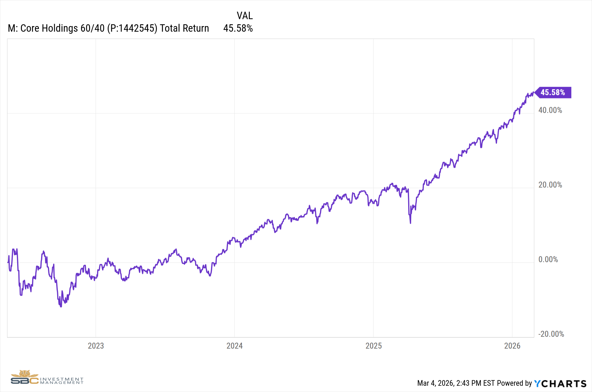 The Model below is a 60/40 Split between Core Equity and Core Fixed Income holdings.