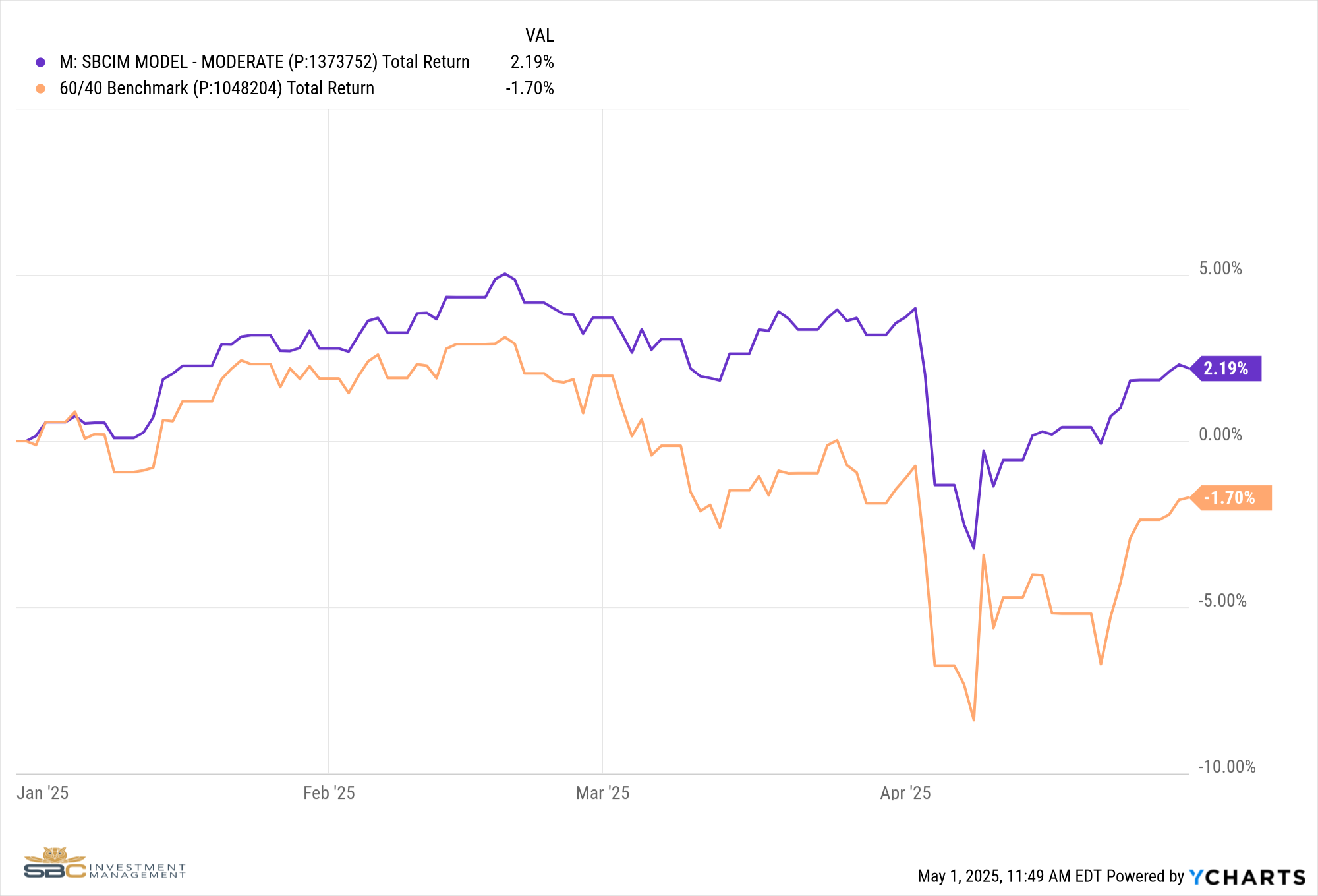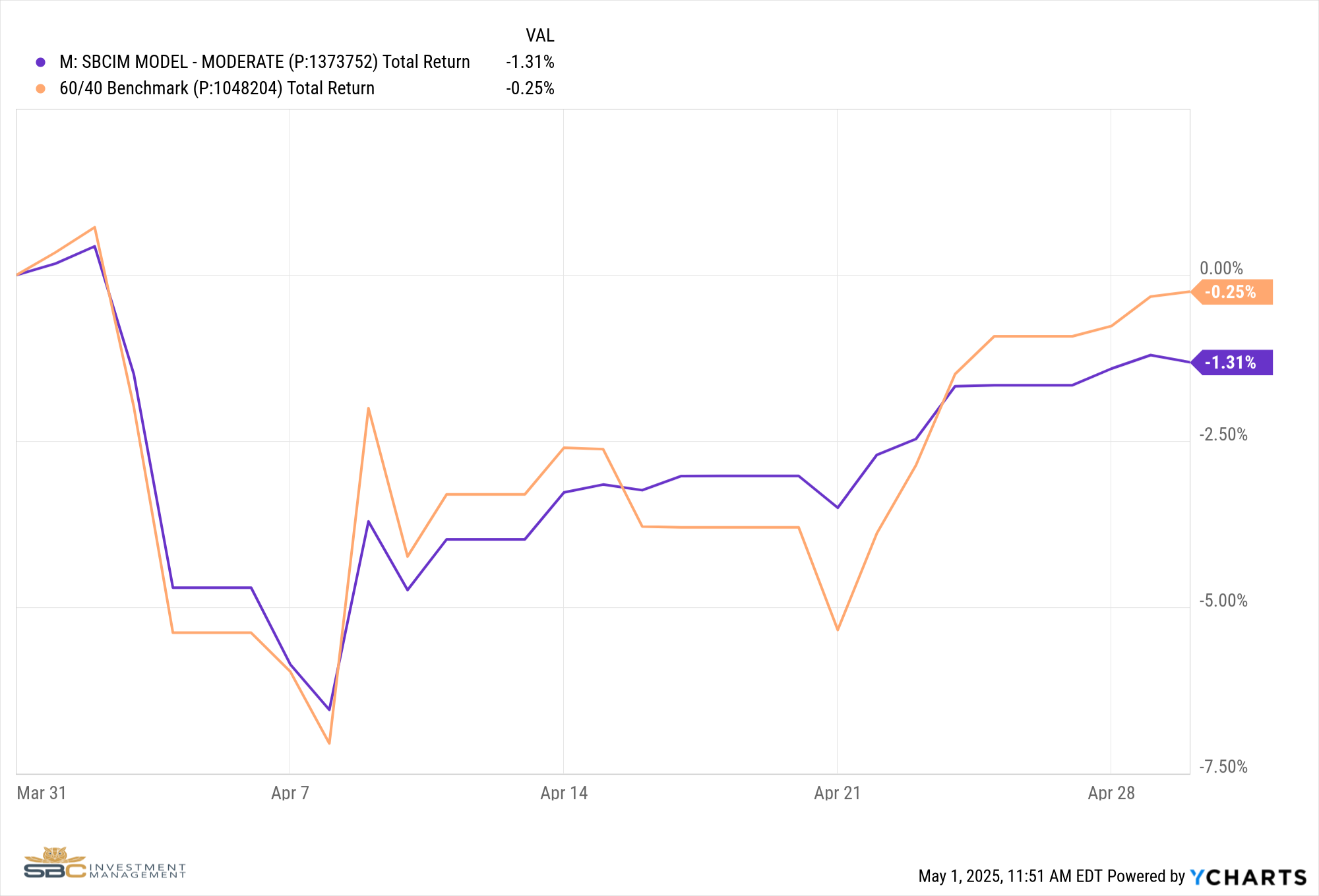 Our Moderate Model Portfolio returned -1.31% during the month of April and has returned 2.19% YTD