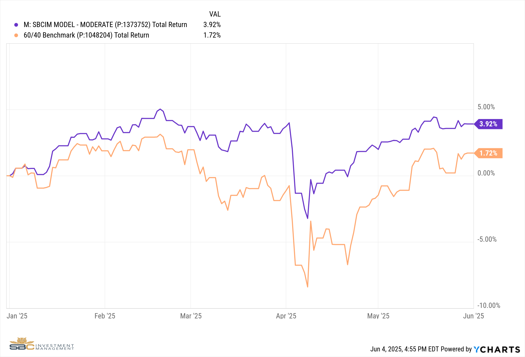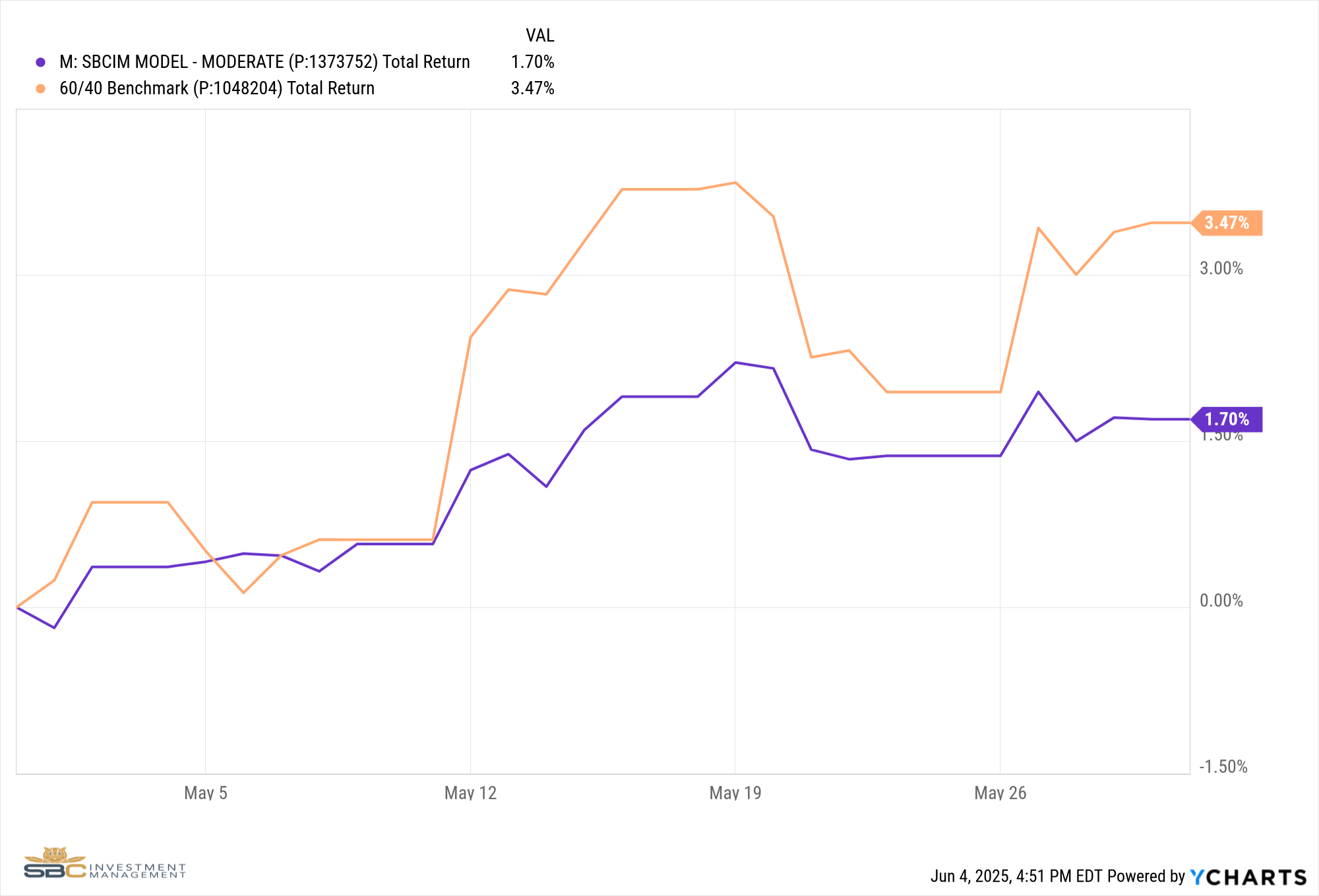 Our Moderate Model Portfolio returned 1.70% during the month of May and has returned 3.92% YTD