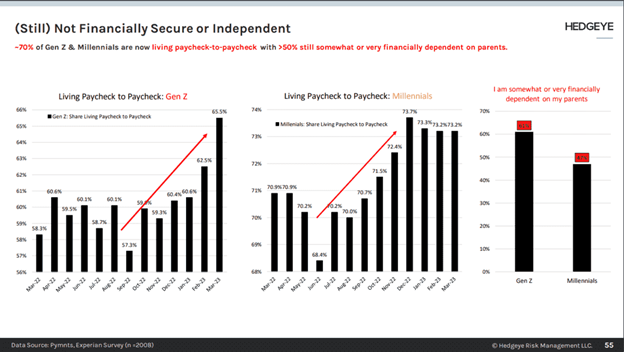 The majority of Generation Z and millennials live paycheck to paycheck or are somewhat dependent upon their parents. These two demographic groups make up a large part of the overall populace in the United States and globally. However, Wall Street is still painting rosie pictures and saying everything is great! Everything must be great then, right? Wrong. The divergence from what Wall Street says and what Main Street feels, is an indication that something is amiss.