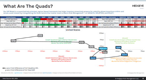 As we look ahead in the markets, there's a lot of near-term uncertainty. For many months, we have had indicators telling us that everything will be higher for longer: inflation, stock market, interest rates, etcetera. But there is an underlying current that has been persistent for the last 12 plus months that not all's well in the market. As we look at the Quads provided by our friends at Hedgeye, we can see that the projection for the 3rd Quarter of 2024 is expected to be a narrow Quad 4. As seen below, Quad 4 is characterized by both decelerating growth and inflation. With this decelerating growth, the risk to the downside in equities is still not insignificant.
