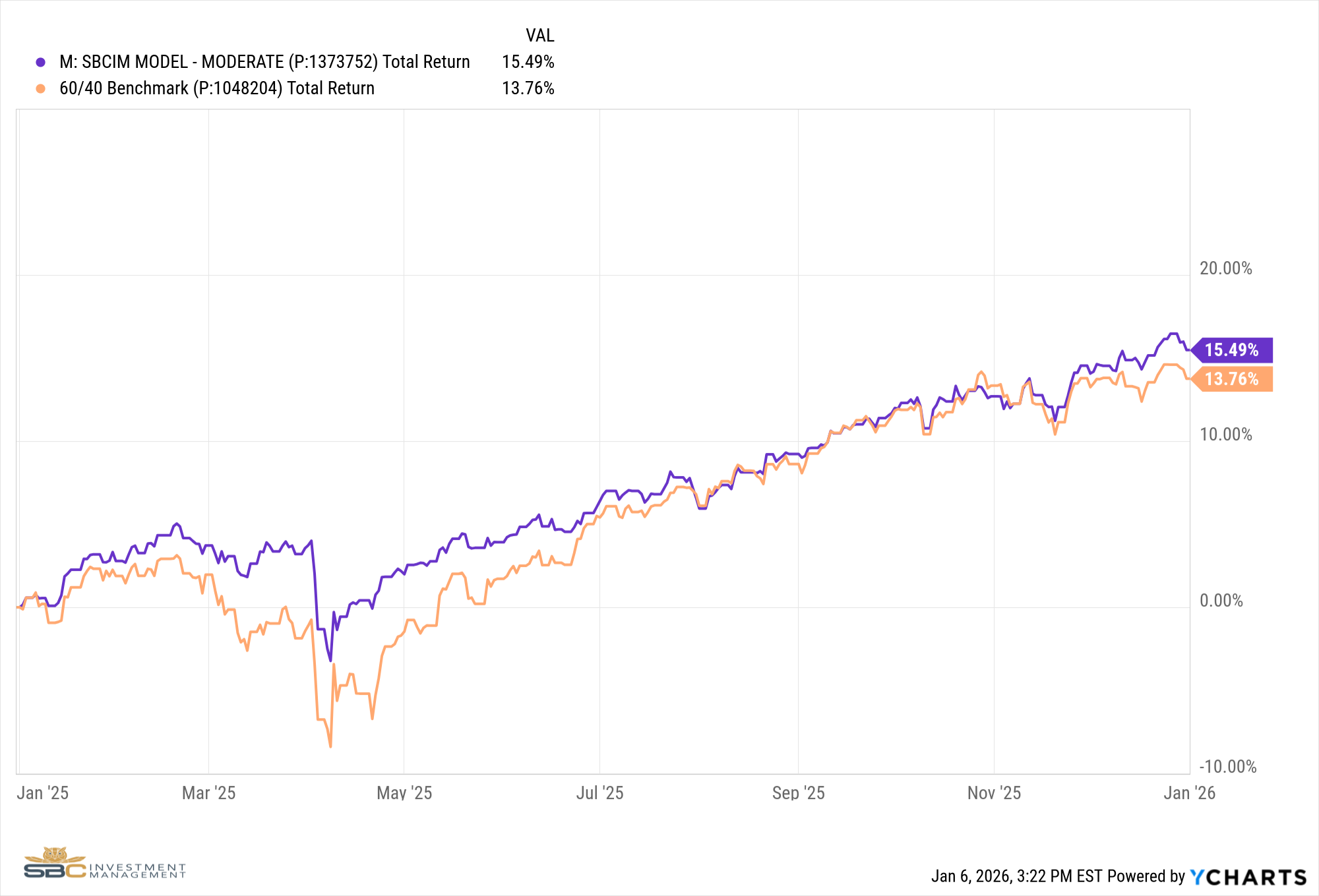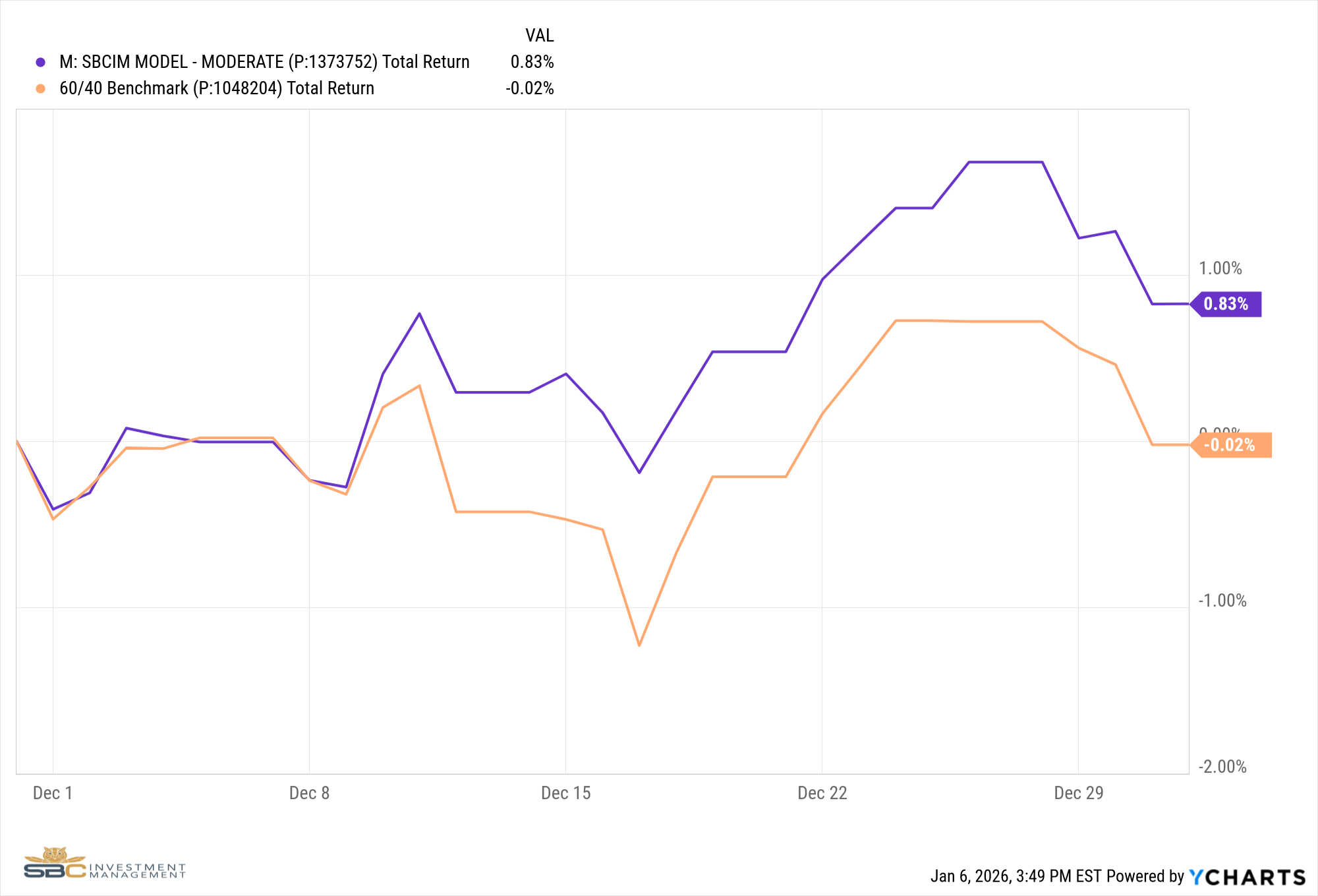Our Moderate Model Portfolio returned 0.83% in December and returned 15.49% for 2025