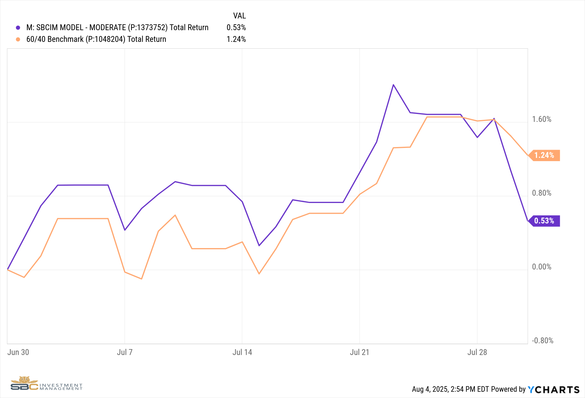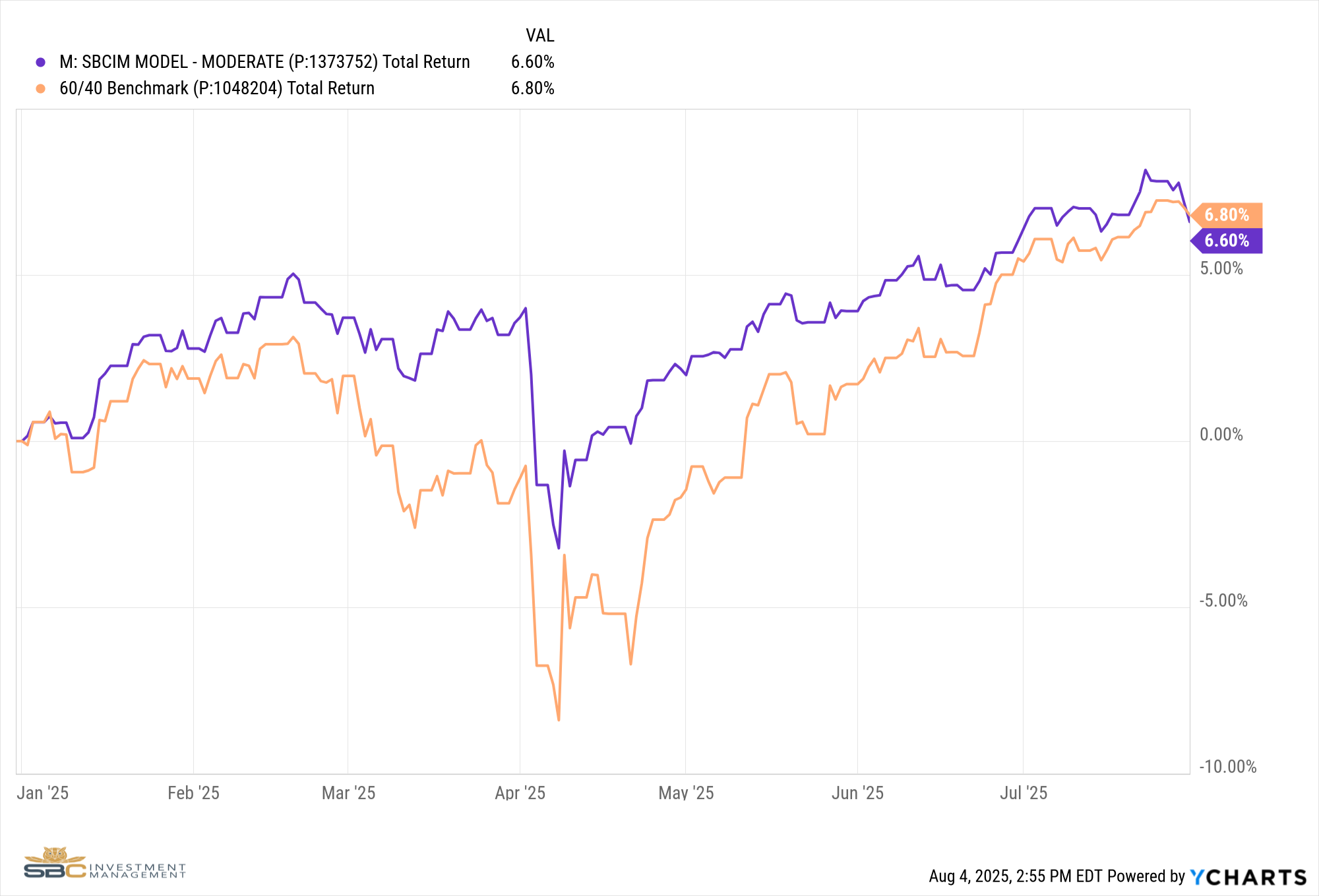 Our Moderate Model Portfolio returned 0.53% during the month of July and has returned 6.6% YTD