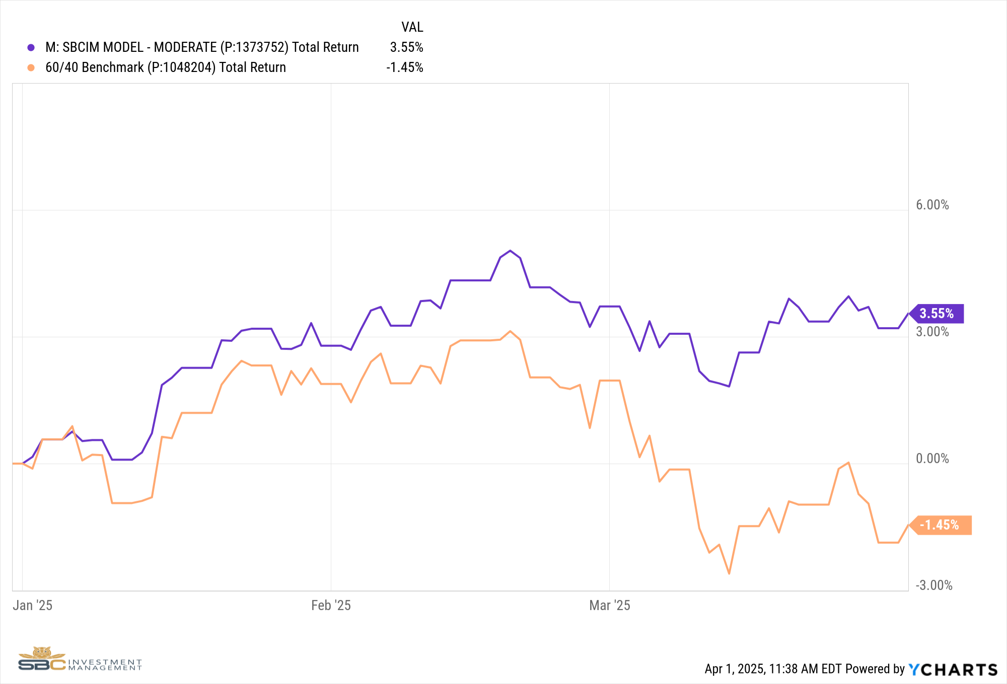 At the end of the Q1 in 2025, the S&P 500 is down -4.27% Year to Date and down -8.51% from previous all-time highs set in February. While a 10% correction in the markets is normal and expected in any given year, the impact that tariffs will have on the economy remains uncertain, and the markets are actively trying to price in this uncertainty. We do believe that further market declines are possible given the current economic landscape. However, our proactive approach to risk management through our satellite process positions us well to handle these challenges. Each satellite plays a unique role in our overall risk management strategy, ensuring we are well prepared to respond as market conditions change. When signals and/or trends change, we may adjust our satellites to reflect new information; this is The Art of Investing. However, our Core will not shift, or change based on short- or medium-term trends; this is The Science of Investing.